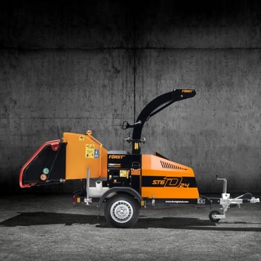 FÖRST ST6D 24 ir profesionāls 6 collu dīzeļa zaru un koksnes smalcinātājs ar uzticamu un vienkāršu 24 ZS Kubota dīzeļdzinēju, kas ir pilnībā mehānisks, padarot to viegli kopjamu, uzticamu un izturīgu pat intensīvā darba režīmā.